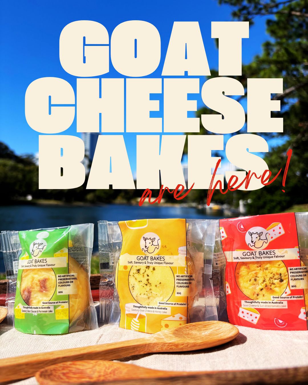 GoatBakes Goat Cheese Cakes – A savoury twist on cheesecake, crafted with creamy goat cheese and baked into a light, velvety cake. Available in three gourmet flavours – Parmesan (rich and nutty), Sun-dried Tomato (tangy and robust), and Honey (subtly sweet and balanced). Perfect as a unique café cabinet item or a premium snack that pairs beautifully with coffee and wine.